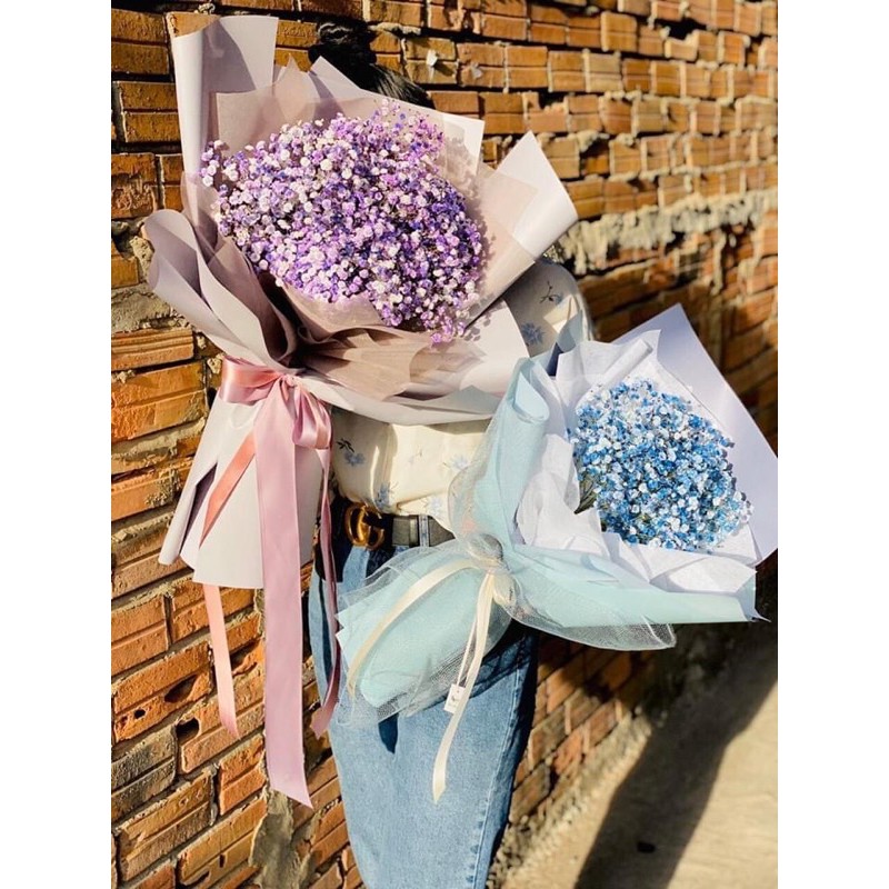 hoa khô baby xanh và tím free ship